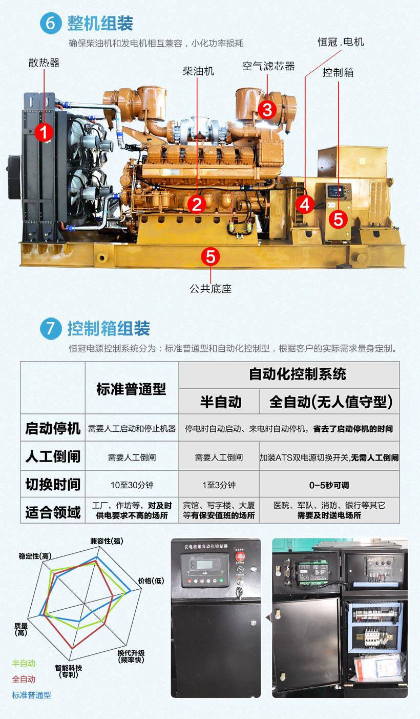 電機(jī)選用MARATHON,STAMFORD,恒冠等知名品牌無刷發(fā)電機(jī),該發(fā)電機(jī)采用凸極整體轉(zhuǎn)子技術(shù),H級(jí)絕緣,鋼板機(jī)身,性能先進(jìn),運(yùn)行穩(wěn)定,可靠。